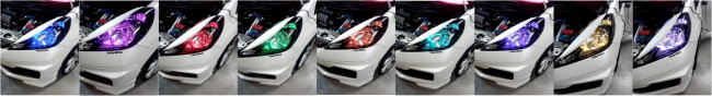 アイライン内にオリジナルのLEDテープを内蔵させることによりヘッドライト、リフレクター内をお好きな色に照射させることも可能としております。※1