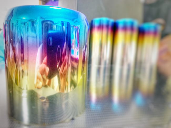 金属製品はもちろんのこと、樹脂製のメッキ製品など焼き色を付けることのできない商品へ塗装することにより本物もしくはそれ以上の見た目へと進化させます。
