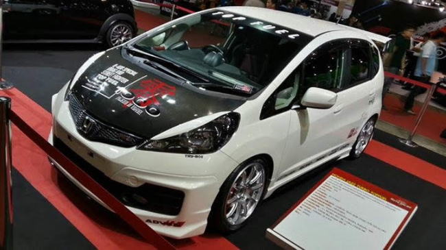 2013年7月 パーツショップTenのFITターボが株式会社トップフューエルのデモカーとしてタイ・バンコクで開催されましたインターナショナルオートサロンに出展されました。